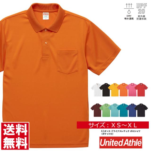 ポロシャツ メンズ 半袖 無地 UnitedAthle ユナイテッドアスレ 4.1オンス ドライ アスレチックポロシャツ ポケット ゴルフ ユニフォーム【5912-01】送料無料 通販A15