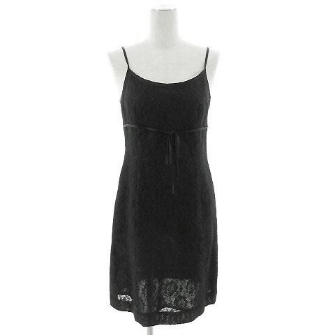 【中古】ロペ ROPE ワンピース ひざ丈 ノースリーブ 総レース 花柄 ウール混 ブラック 黒 M レディース