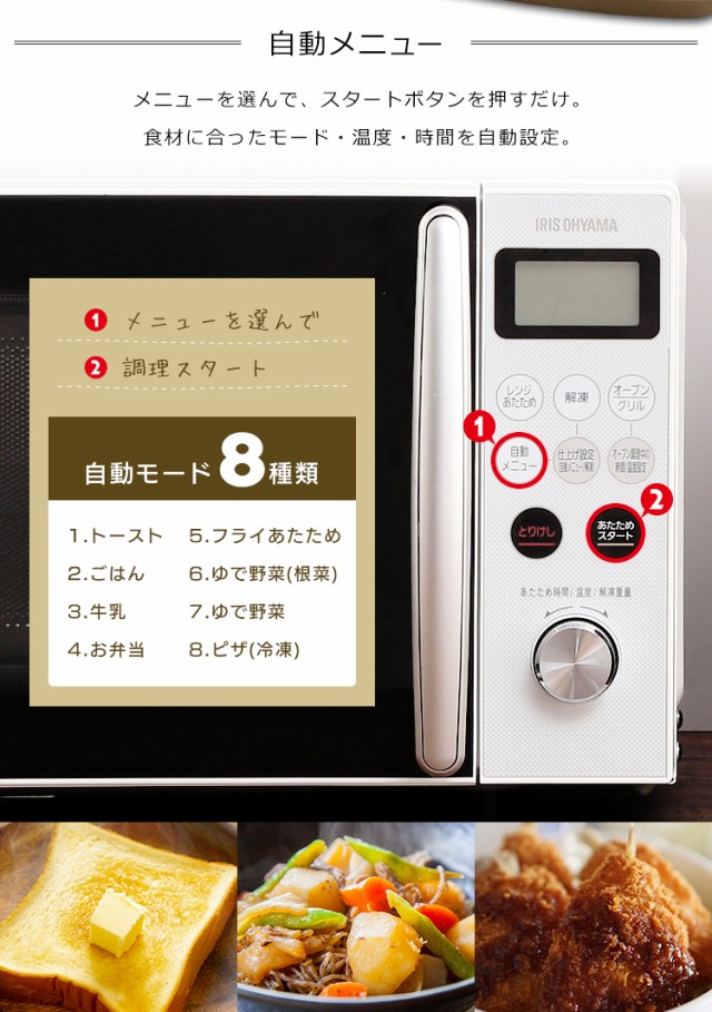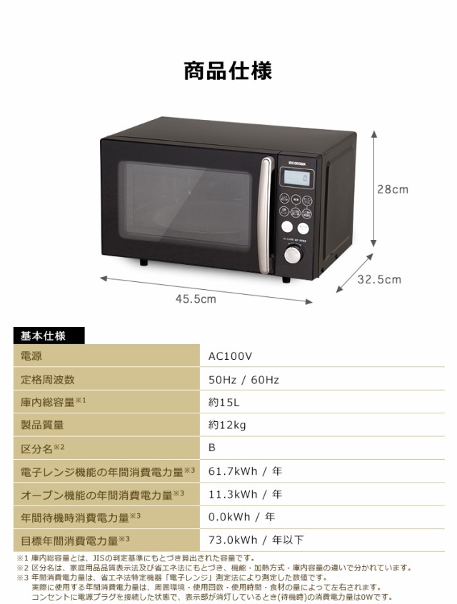 オーブンレンジ アイリスオーヤマ レンジ 電子レンジ オーブンレンジ 15L MO-T1501-W MO-T1501-B ブラック 家電 ターンテーブル 台所 キッチン 解凍 オートメニュー あたため 簡単 調理家電 タイマー トースト