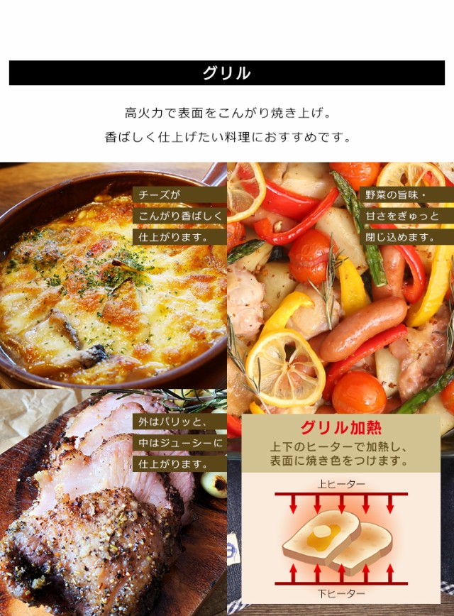 上下のヒーターでしっかりと庫内をあたため、中はふっくら外はカリッと仕上げます。