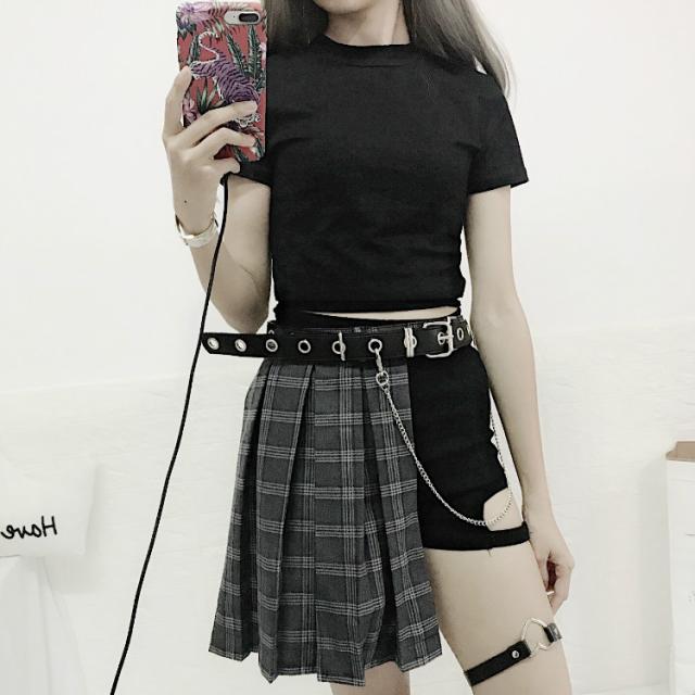 チェック柄スカート ブラック ショットパンツ ベルト スカート 3点 セット レディース スリット プリーツ ハイウエスト スカパン Aライン セクシー ショーパン フレア 短パン ダンス ストリート 可愛い セクシー 原宿 韓国 衣装 ガーターベルト付き ピープス女子 裏原宿系
