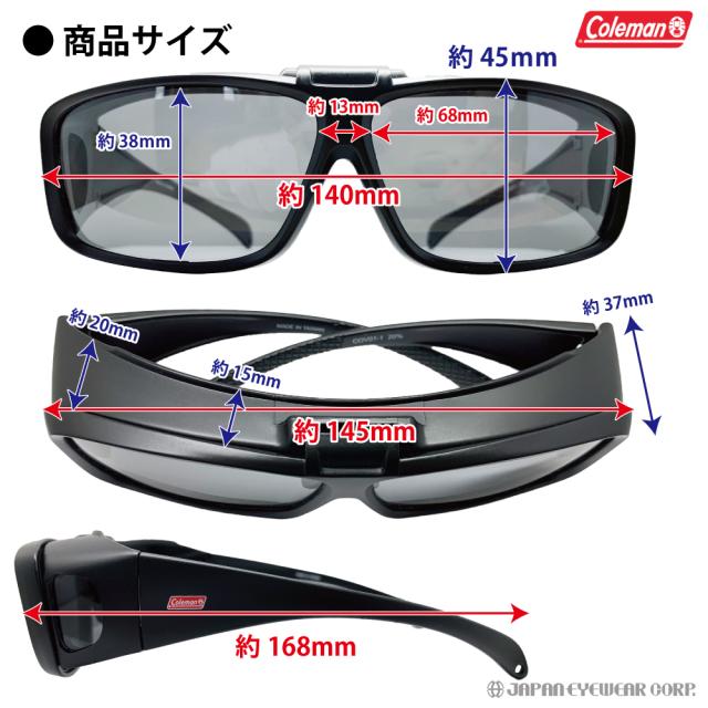 Coleman コールマン オーバーサングラス 跳ね上げ式 偏光 UVカット99% レンズ COV01-1(PL-220029)スモーク 花粉 オーバーグラス 送料無料