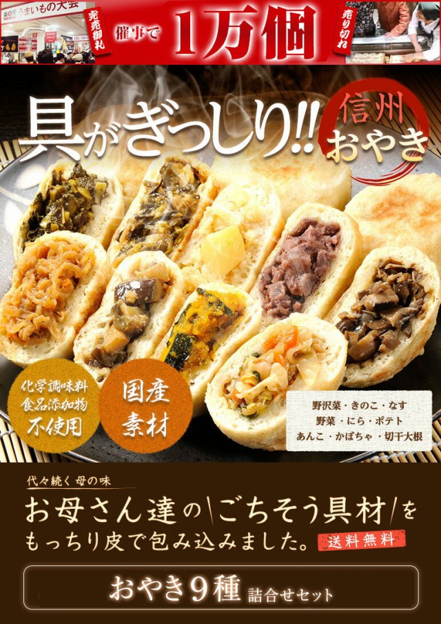 おやき 9種詰め合わせセット[エコ包装](野沢菜 きのこ 野菜 ポテト あんこ なす 切干大根 にら かぼちゃ)