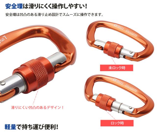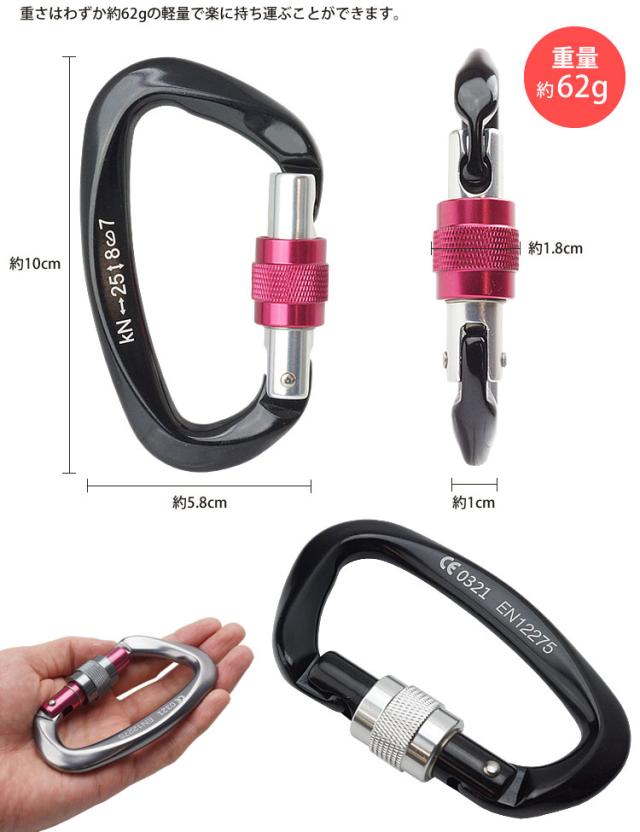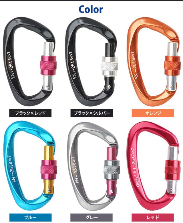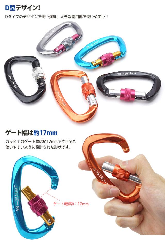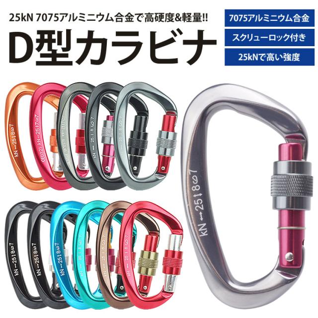 カラビナ 25kN D型 スクリューロック 安全環 7075 アルミニウム合金 アウトドア キャンプ 登山 クライミング 軽量 PR-K9901【メール便 送料無料】