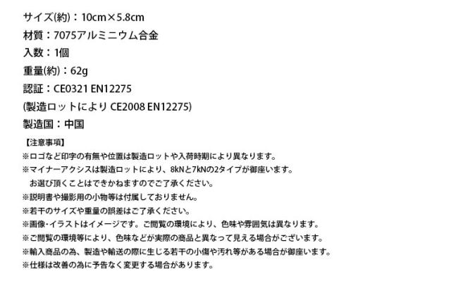 クローズドゲート/25kN、オープンゲート/7kN、マイナーアクシス/8kN(製造ロットにより7kN)の力に耐えることができます。