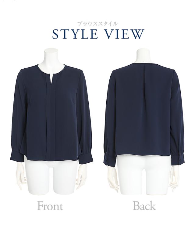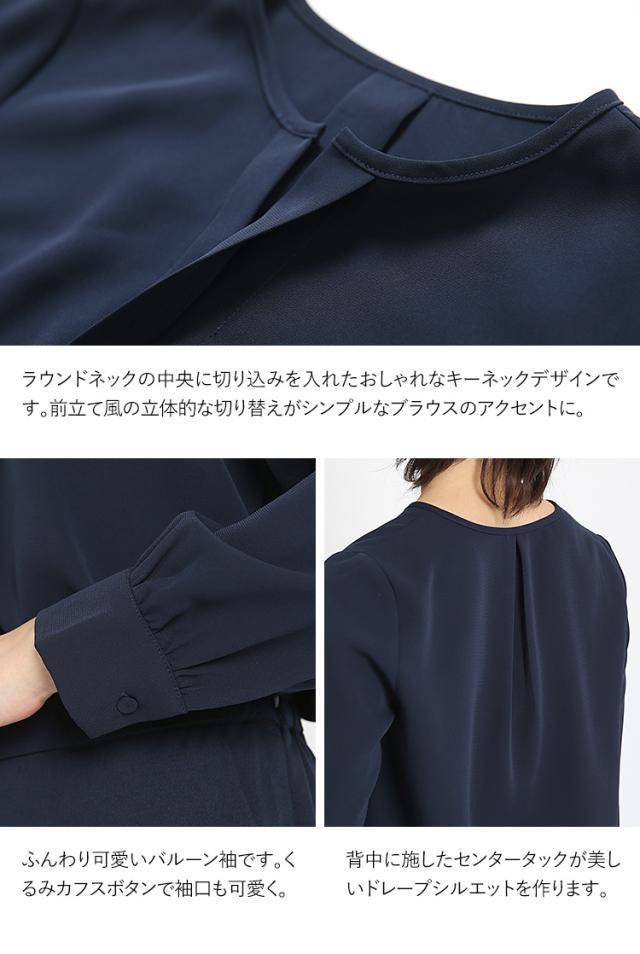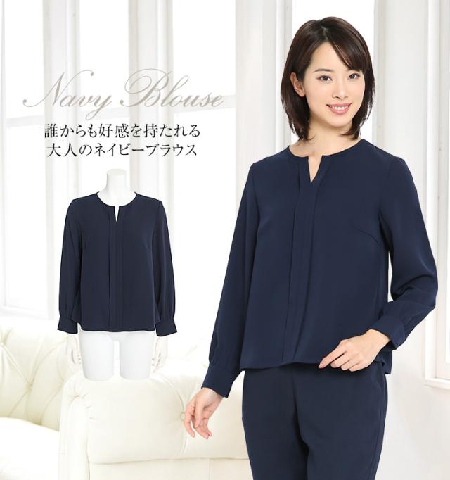 [ブラウス レディース オフィス 紺 長袖 キーネック おしゃれ フォーマル カジュアル 入学式 通勤 インナー トップス 大きいサイズ 洗える ママ スーツ 通学 仕事 ビジネス 結婚式 七五三 お受験 入園式 卒園式 卒業式 服装 母親 ネイビー 30代 40代 50代 春 夏 秋 冬 NB-01]
