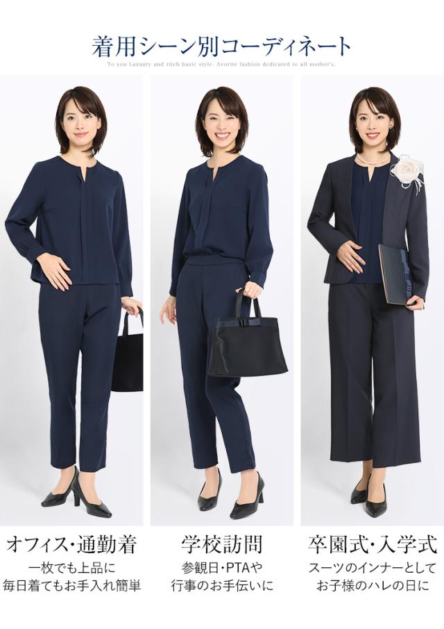 ・流れるようなドレープ感と落ち感が美しく出る、上質な生地を使用しています。裏地が無くても透けにくく、学校訪問などのセミフォーマルからママ友とのランチまで幅広いシーンに対応します。