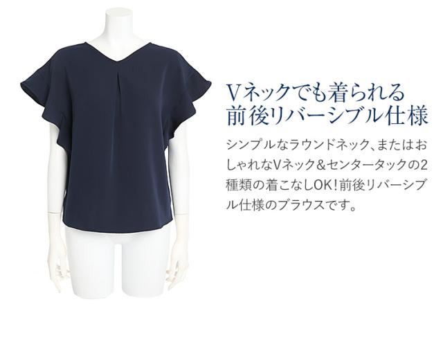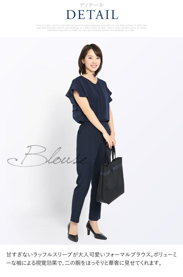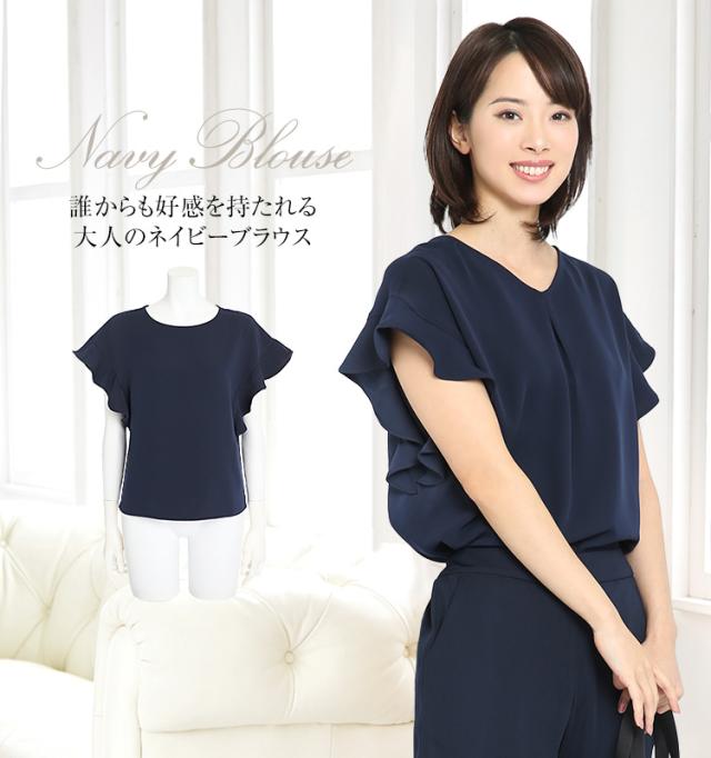 [ブラウス レディース オフィス 紺 半袖 フリル おしゃれ フォーマル カジュアル 入学式 通勤 インナー トップス 大きいサイズ 洗える ママ スーツ 通学 仕事 ビジネス 結婚式 七五三 お受験 入園式 卒園式 卒業式 服装 母親 ネイビー 30代 40代 50代 春 夏 秋 冬 NB-02]