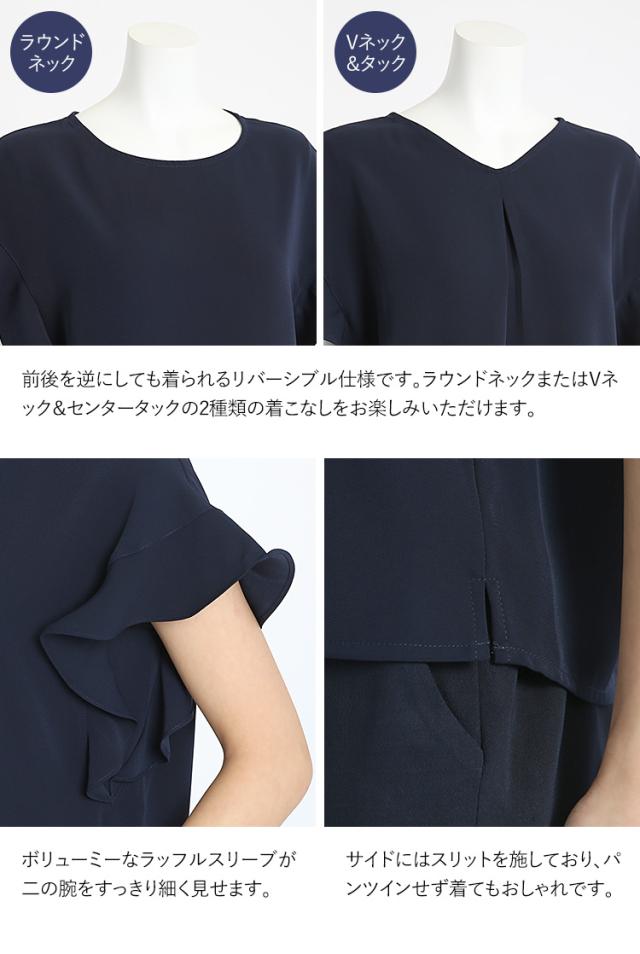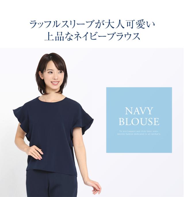 ブラウス レディース オフィス 紺 半袖 フリル おしゃれ フォーマル カジュアル 入学式 通勤 インナー トップス 大きいサイズ 洗える ママ スーツ 通学 仕事 ビジネス 結婚式 七五三 お受験 入園式 卒園式 卒業式 服装 母親 ネイビー 30代 40代 50代 春 夏 秋 冬 NB-02