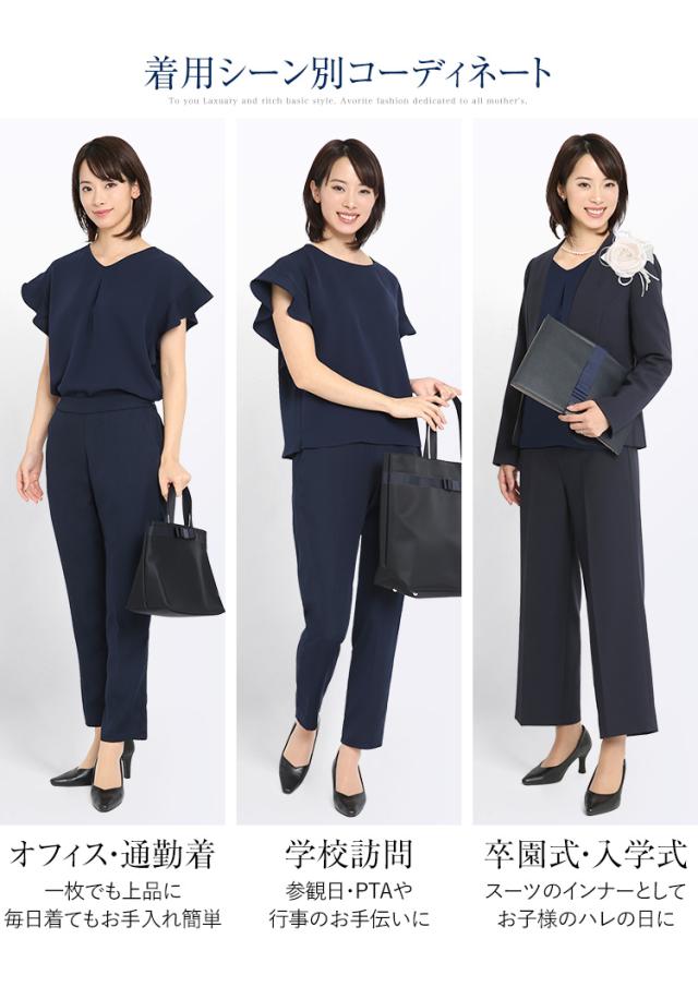 ・流れるようなドレープ感と落ち感が美しく出る、上質な生地を使用しています。裏地が無くても透けにくく、学校訪問などのセミフォーマルからママ友とのランチまで幅広いシーンに対応します。