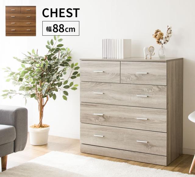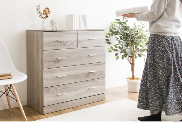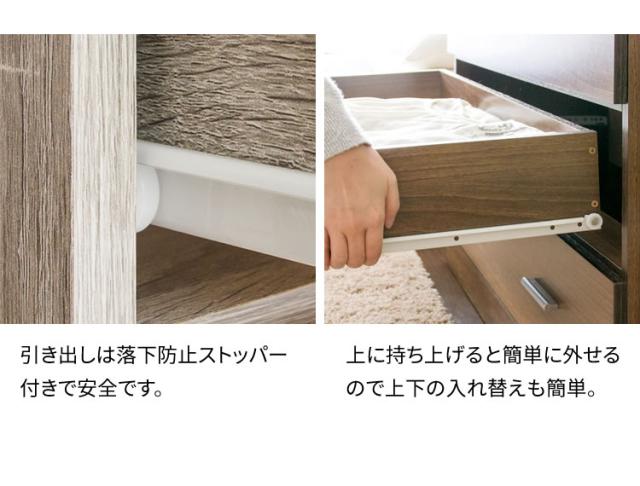 開閉がラクなスライドレール付きで、たっぷり収納できる木製チェスト。