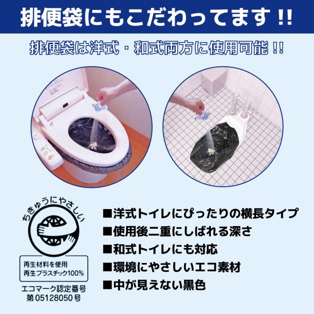 災害備蓄用、アウトドア用簡易トイレの定番30回分フルセットです!(抗菌・消臭・防臭袋付・15年保存タイプ)日本製