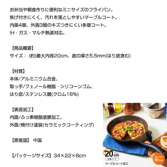 IHゴールドマーブルフライパン 20cm IH対応フライパン マルチ熱源対応 マーブルコーティングフライパン フッ素加工フライパン