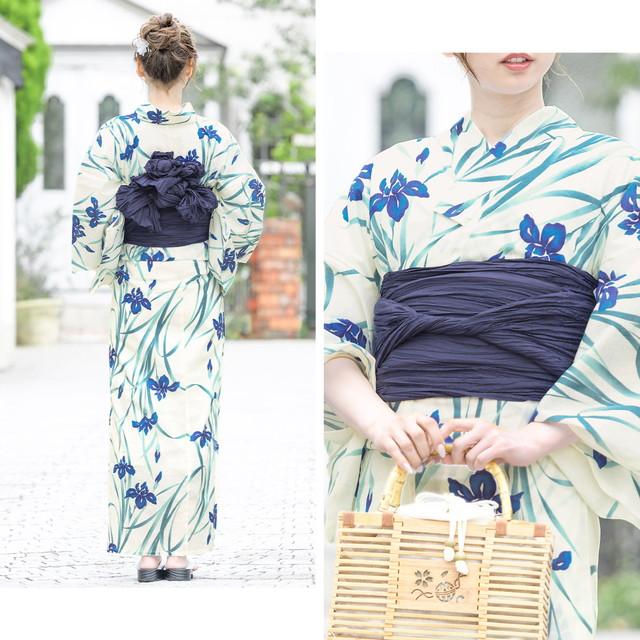 浴衣セット レディース レトロ 浴衣セット 大人 3点セット ブルー 青系 ホワイト 白 菖蒲 花 フラワー レトロモダン 綿 変わり織り 夏祭り 花火大会 女性用 フリーサイズ