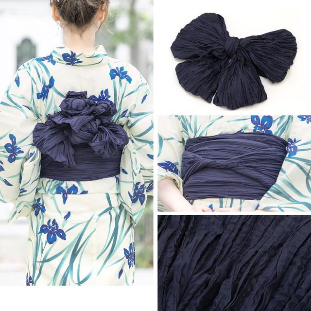 帯は、体に巻いて後ろで結ぶタイプの兵児帯です。