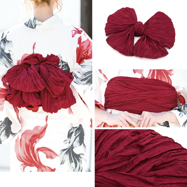 帯は、体に巻いて後ろで結ぶタイプの兵児帯です。