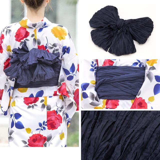 帯は、体に巻いて後ろで結ぶタイプの兵児帯です。