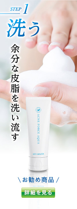 1. ニキビ洗顔:原因から余分な皮脂を洗い流す