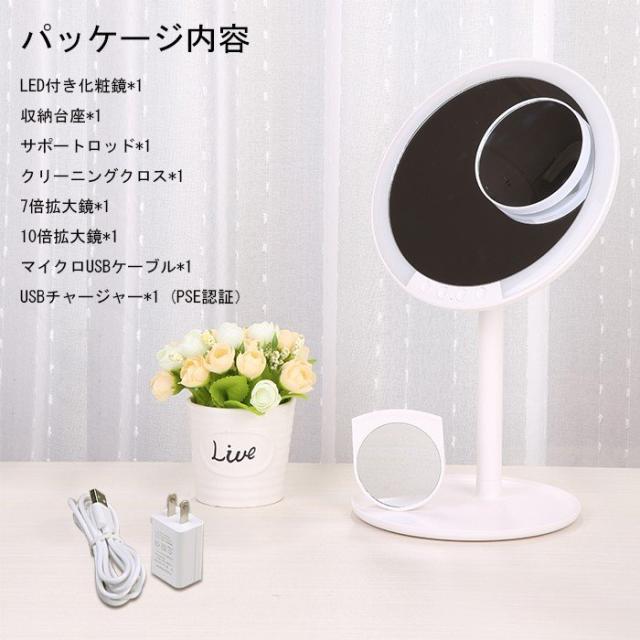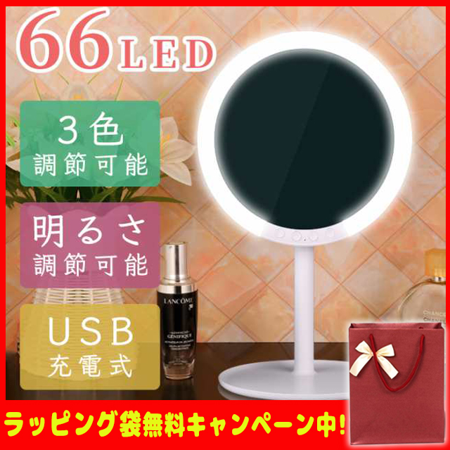 「クーポン配布中」「即納」「無料ブレゼント袋」卓上ミラー LED 卓上ミラー ライト付き 女優ミラー 卓上 化粧鏡 スタンドミラー 卓上 女優ミラー ライト 明るさ調節可 3色調節可 7倍10倍拡大鏡付 66LED 120°回転可能 USB給電式 高級品 母の日 バレンタイン プレゼント