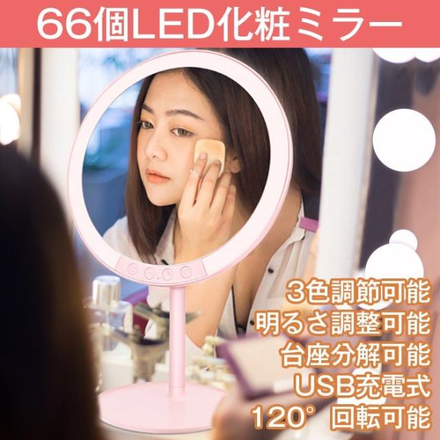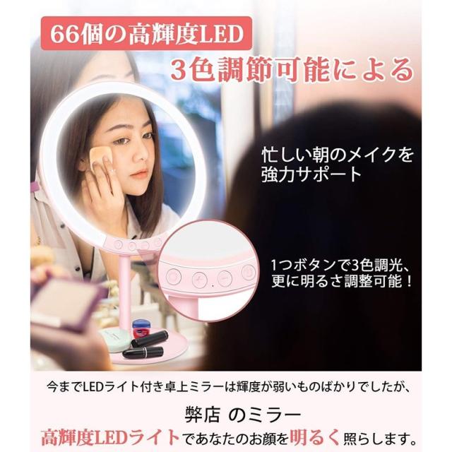 【66個LED付き】66個のLEDライトが付いております。LED照明なので、時間や場所を気にせず、いつでもどこでもメイクが楽しめ、お美しい人生を照らします。暗い場所や夜でも綺麗にメイクできますので、失敗なメイクになれにくいです。