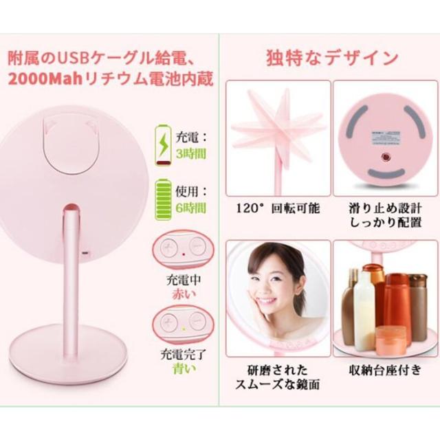 【充電式化粧ミラー】ミラーに2000Mahのリチウム電池が内蔵されており、繰り返し充電できます。電池式より経済的で、より長く利用できます。一度の充電で6時間連続使用可能です。節約のため、ご使用後に電源をoffにしたほうがいいです。