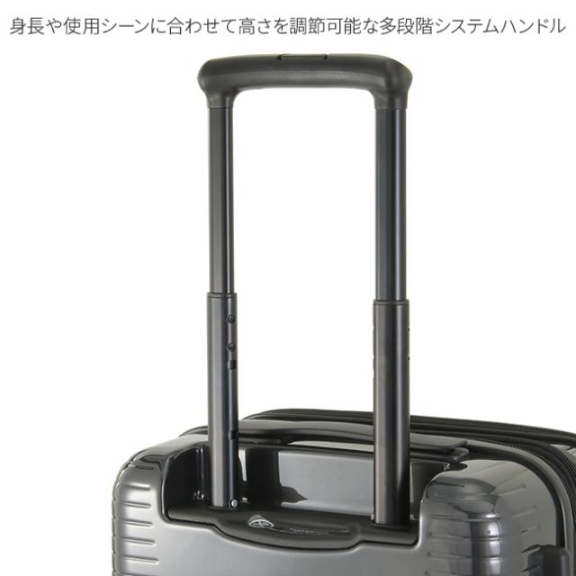 | 本体素材にポリカーボネートを採用し、高い耐久性、軽量性を実現。機能に関しては、荷物の仕分けや出し入れしやすい"フロントポケット"、不意な走行を防止する"キャスターストッパー"や荷物の量に応じて調整できる"エキスパンダブル機能"を搭載し、ビジネス出張を快適にサポートします。機内持ち込みサイズを含めた計2サイズ、世代、性別問わず持ちやすい3色での展開です。 【仕分ける!フロントポケット】 すぐに取り出したい荷物は前ポケットへ。出し入れの頻度や必要性に応じて荷物の仕分けができます。 *フロントポケットからメインスペースにアクセスが可能です。 【止める!キャスターストッパー】 電車やバスなどの公共機関や空港、坂道などでキャスターの不意な移動を防止します。 また、走行音を抑えた静音キャスターを採用。(安定した走行を実現する双輪仕様) 【調整する!エキスパンダブル】 荷物の量に応じてスーツケースのスペースを調整できます。 |