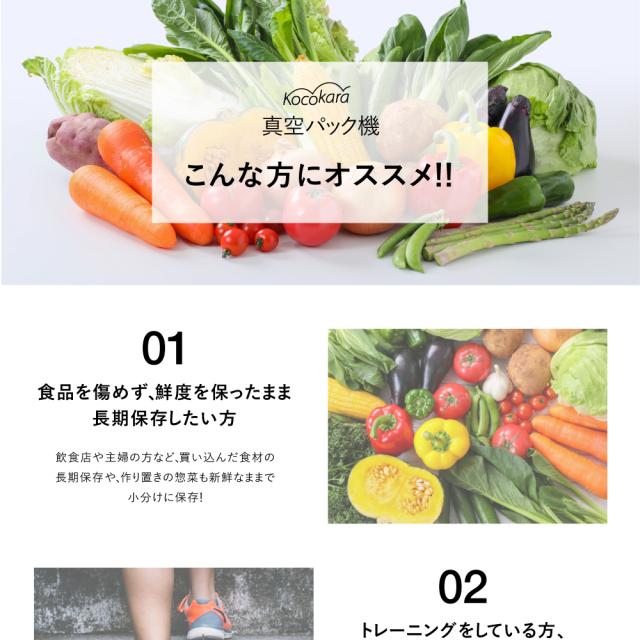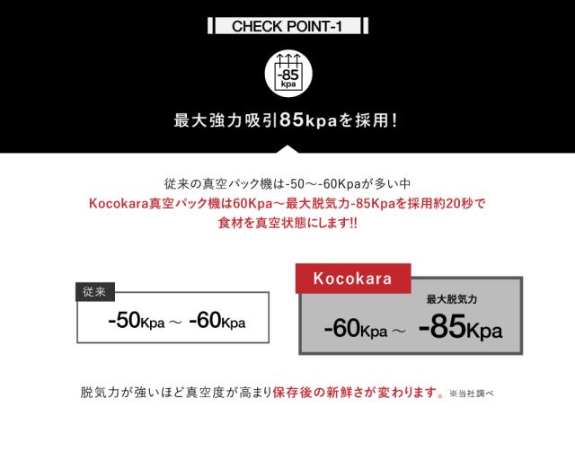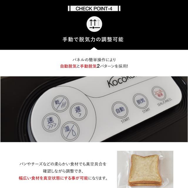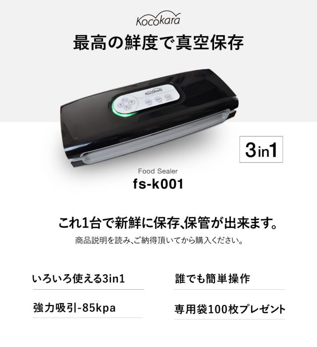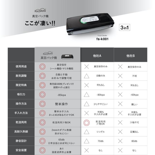 真空パック器 真空パック機 Kocokara 家庭用 業務用 真空機 真空脱気シーラー シーラー 真空パック 吸引力85Kpa 専用袋100枚プレゼント 安全装置搭載