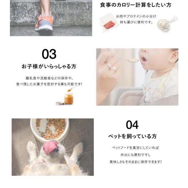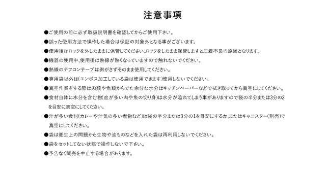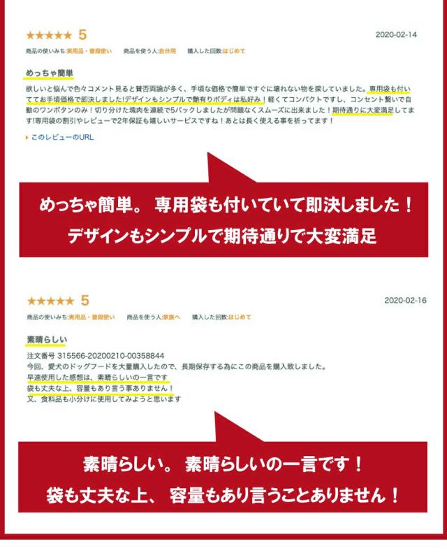 - とても使いやすく、専用の真空袋も付いているのでお得だと思います。 これで食材も安心かつ簡単に保存できます。 注文番号329373930