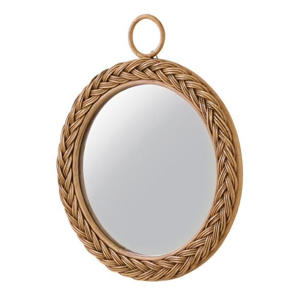 デザイン 壁掛けミラー Mサイズ 壁掛け鏡 ナチュラル クリア塗装天然木 ラタン製フレーム 丸型 ミラー RE24MR-712