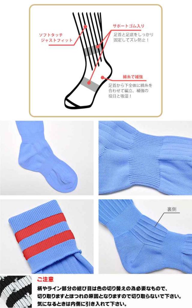 練習に、試合に、毎日履く物だから安くて丈夫で快適な物を。日本国内で生産管理をしている安心品質の日本製(made in japan) 土踏まず周辺と足首にサポート力の強い弾性繊維採用し、ズレを防止。 足底に補強糸を加えることで激しい運動でも破れにくく、繰り返しのお洗濯にも強い。