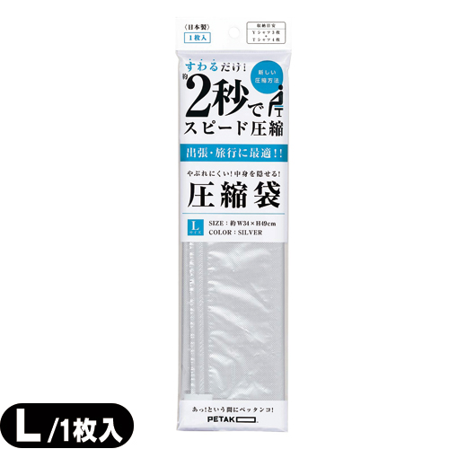 【収納用品・圧縮袋】いづみ企画 PETAKO ペタコ Lサイズ(340×490mm) - すわるだけ、あっ!という間にスピード圧縮!2秒で圧縮できる圧縮袋。Yシャツ3枚+Tシャツ4枚程度収納可能なサイズです。