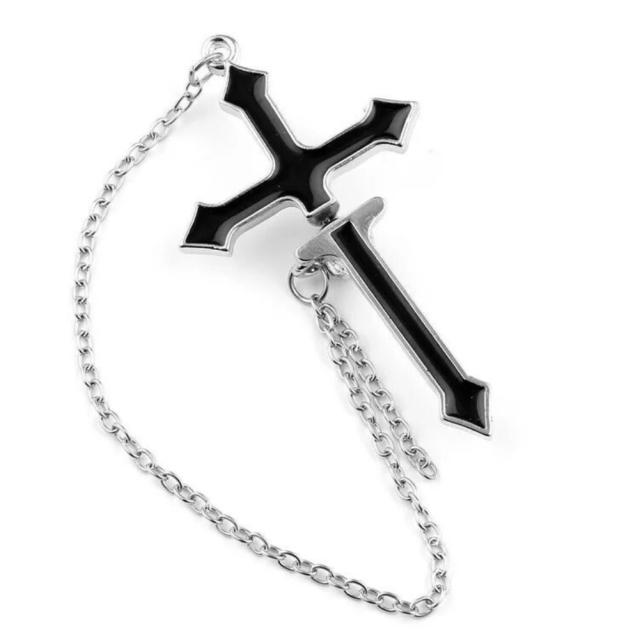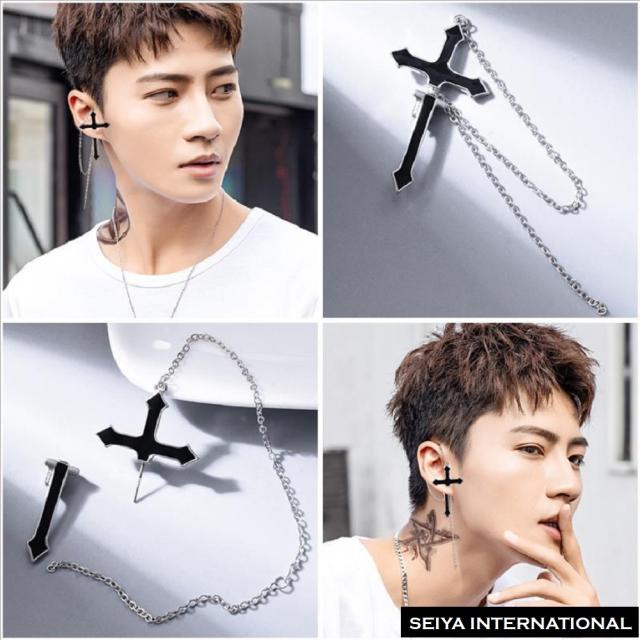 片耳用1個での販売になります。片耳だけでなく両耳用に2個装着するとインパクトがあり、韓国、韓流、K−POP好きな方、オルチャンファッションのコーデを引き締めてくれます。十字架部分は合金にメッキコーティングを施しております。衣類や髪の毛が引っかかりやすいのでご注意ください。