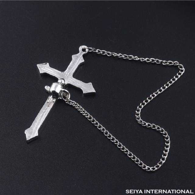 大きい十字架が刺さっているデザインです。チェーンが巻き付いていてダークな感じが闇かわいいです。クリスマス、ハロウィン、ライブ、デートやパーティなどの普段使いからコスプレ、イベントまで、様々なシーンで活躍します。
