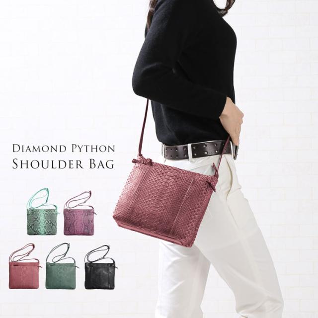 ダイヤモンドパイソン ショルダーバッグ レディース 斜め掛け 軽い 小さめ 本革 レザー 春 母の日 ギフト プレゼントレザーバッグ 本革ショルダー(No.06001485)