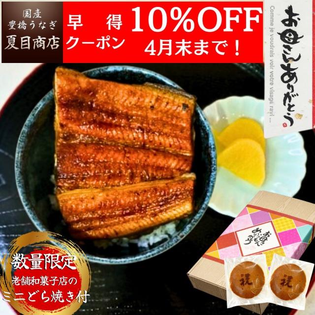 新発売 母の日 早割 【200set限定】うなぎ 国産 ギフト お亀堂 ミニどら焼きと 蒲焼き 特大カット(ポン半) 115-130g×1袋 約1人前 送料無料 豊橋うなぎ プレゼント 贈り物 お祝 鰻 専門店 愛知県産 三河産 食べ物 グルメ 海の幸 誕生日 お祝い 50代 60代 70代 80代
