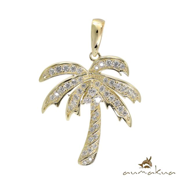 ハワイアンジュエリー シルバー ペンダントトップ ヤシの木 シルバー925 ネックレス チェーン別売 ジルコニア イエローコーティング aumakua メール便 メンズ レディース 誕生日 プレゼント ホワイトデー 卒業式 入学式 【品番:461-11-02】