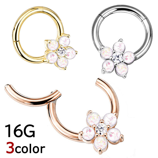 簡単着脱♪ オパールグリッター&フラワー フープ セグメントリング 1個入り 16G 【 軟骨ピアス 耳 ピアス 鼻ピアス ノーズ セプタム シルバー イエローゴールド ピンクゴールド 】