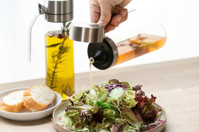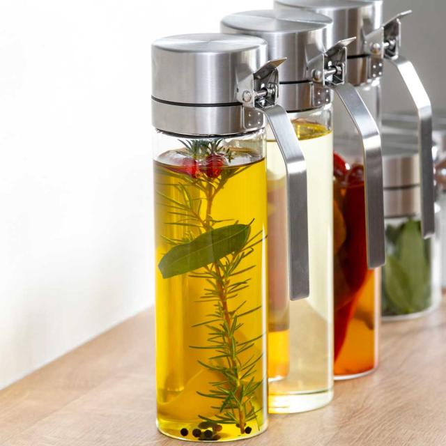 酸化が大敵なオイルやヴィネガーを美味しいまま保存できます。ハンドルは長くて持ちやすく、ワンタッチで開くリッドで調理中も片手で簡単に注げます。