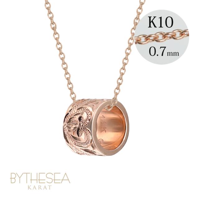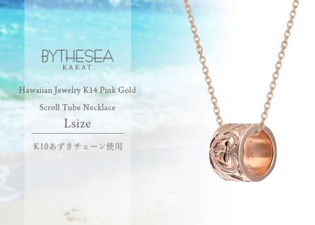 ゴールド ネックレス ハワイアンジュエリー ネックレス ゴールド ピンクゴールド ネックレス スクロールチューブ Lサイズ 14K K14ピンクゴールド K10 10Kあずきチェーン太0.7mm ギフトラッピング可能 BY THE SEA バイザシー プレゼント ホワイトデー 【品番:CG-GP126R】