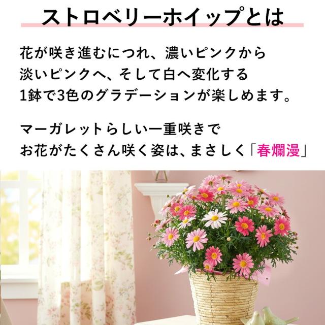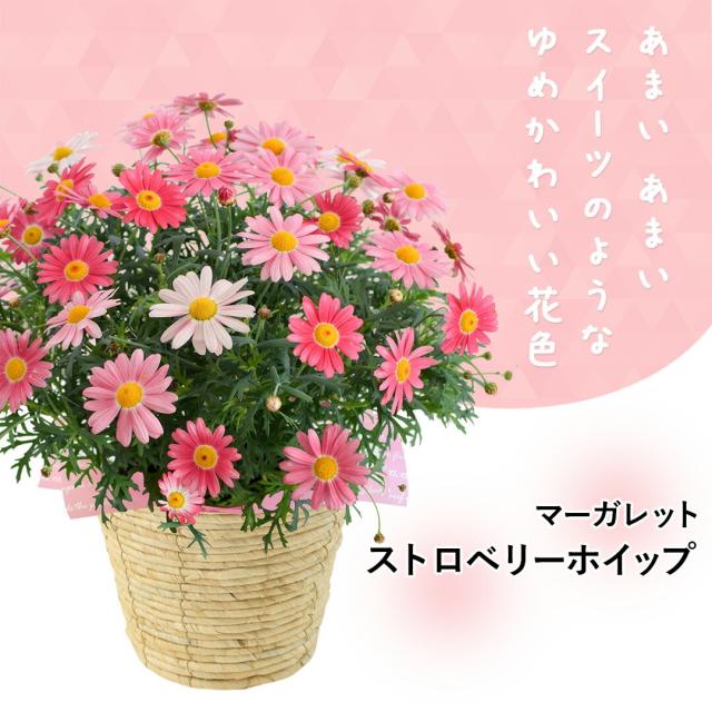 春限定 マーガレット ストロベリーホイップ 5号 鉢 鉢植え 2/13〜4/26まで日時指定OK 鉢植え プレゼント ギフト バスケット付 多年草 毎年 咲く 鉢花 花鉢 お花 お祝い 花 お花 春 お祝い お誕生日 誕生日 女性 女友達 花鉢 入学祝い 開店祝い 退職祝い フラワー ギフト