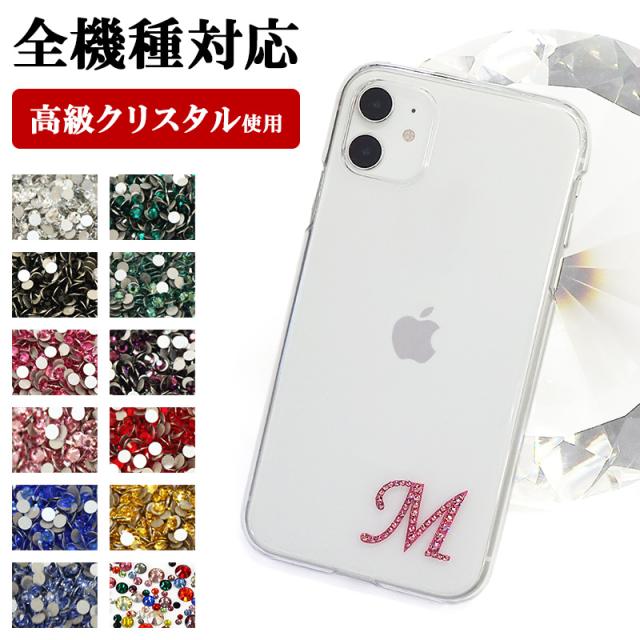 スマホケース ハード 全機種対応【クリアケース×イニシャルデコ】スマホカバー カバー ハードケース 透明 iPhone15/14/13/12/SE3/11/XS/XR/XSMax/X/8/7/6 プラス アイフォン 高級クリスタル使用 イニシャル ローマ字 デコ ギフト プレゼント メール便送料無料 受注生産