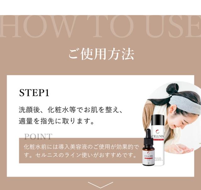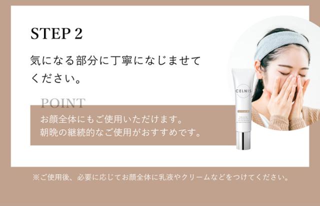 | ご使用方法 | 洗顔後、または化粧水等でお肌を整えたあと、適量を気になる部分になじませてください。 朝晩ご使用いただけます。 |