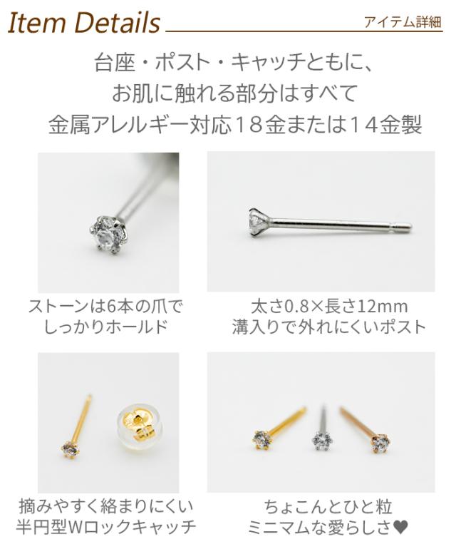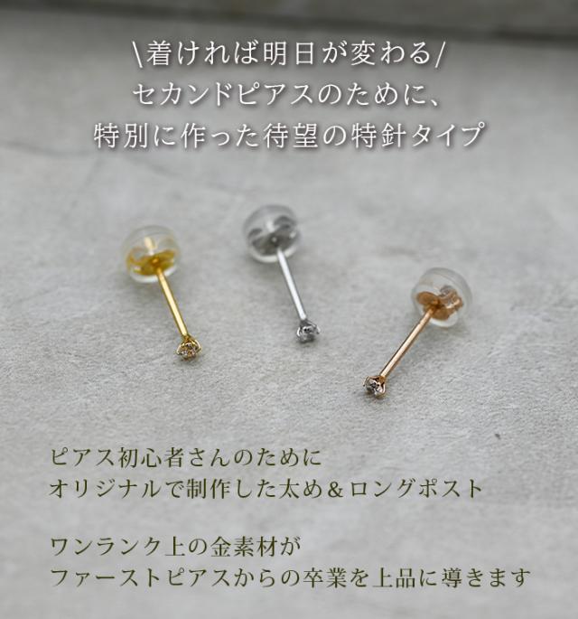 18金 ピアス つけっぱなし つけっぱなし レディース K18 軸太 ロングポスト 極小 キュービック ジルコニア 2mm 2.5mm 当店オリジナル 全品1個ずつバラ売り 日本製 ピアス シンプル 地金 プレゼント