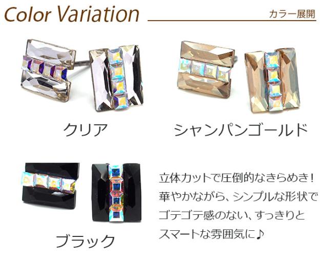 | 明日が変わるキュービックジルコニア ラインストーン UV樹脂留め加工 金属アレルギー対応 ステンレスピアス 長方形 四角 スクエア |