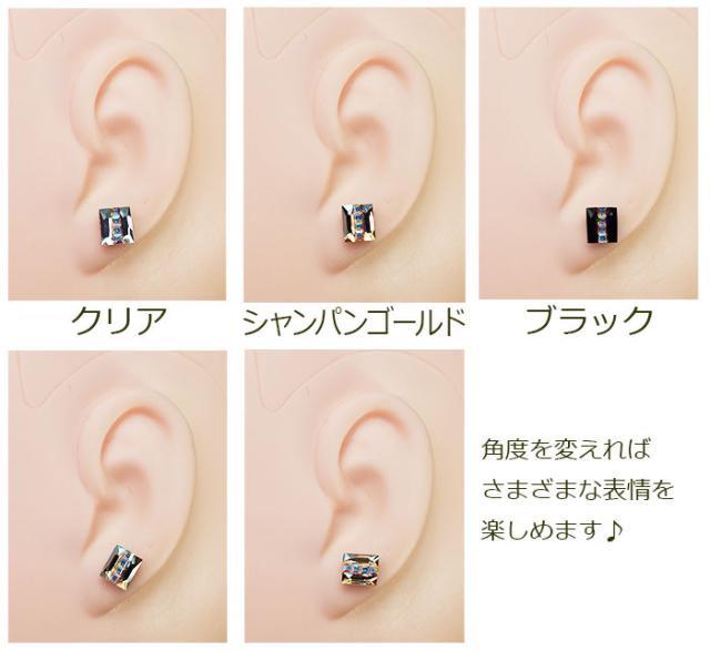 【在庫限り】セカンドピアス つけっぱなし 軸太 片耳 ラインストーン 透明 UV樹脂留め 長方形 スクエア 全3色 医療用 サージカル ステンレス 金属アレルギー【当店オリジナル】片耳 1個