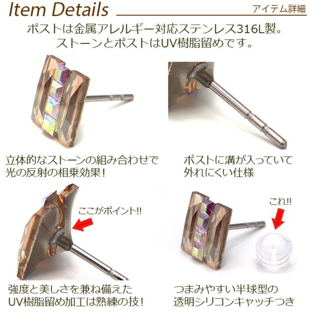 | 明日が変わるキュービックジルコニア ラインストーン UV樹脂留め加工 金属アレルギー対応 ステンレスピアス 長方形 四角 スクエア |