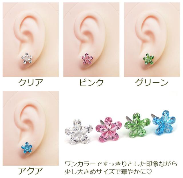 【在庫限り】セカンドピアス つけっぱなし 軸太 ラインストーン フラワー 5枚花 全4色 医療用 サージカル ステンレス 金属アレルギー 透明 キャッチ【当店オリジナル】片耳 1個