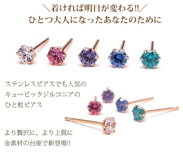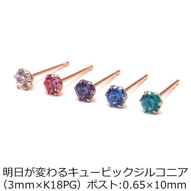 | セカンドピアス ピアス つけっぱなし K18 PG 明日が変わるキュービックジルコニア 3mm 金属アレルギー対応 |
