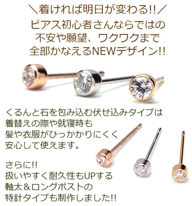 | 【当店オリジナル】明日が変わるキュービックジルコニア 3mm K18 K14 18金・14金製 一粒 ひと粒 ピアス 金属アレルギー対応 (ふせこみ 伏せ込み フクリン ベゼルセッティング オールラウンド クラシック)特針 |