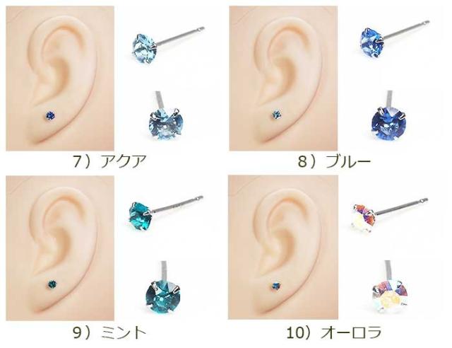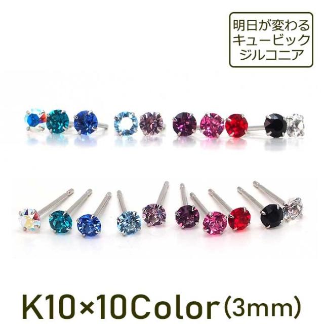 明日が変わるキュービックジルコニア ラインストーン 1粒ピアス 3mm K10 全10色 全品1個ずつバラ売り